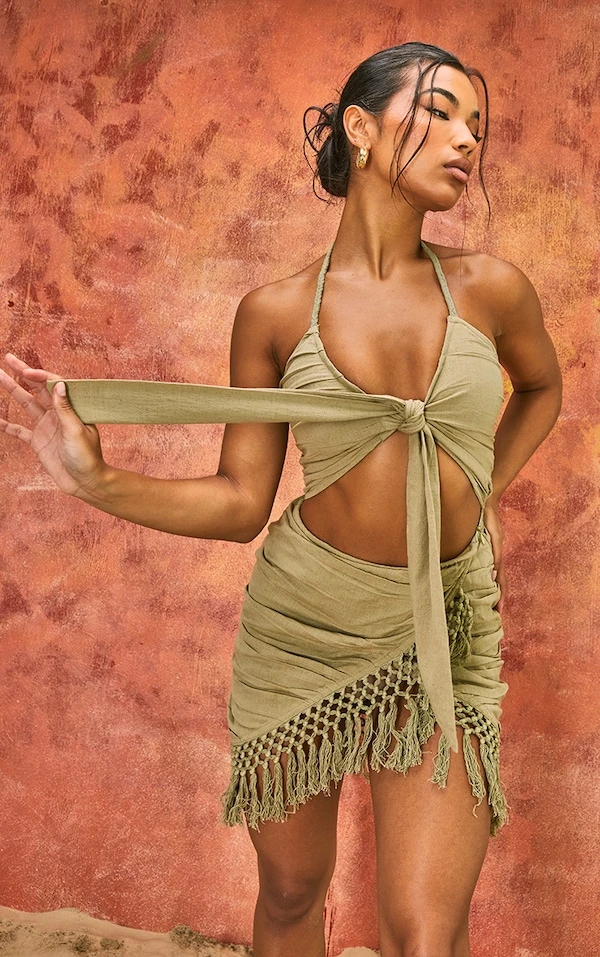 Bohème et magnifique dans cette robe à franges ! On craque sur la couleur kaki, le design à buste noué et la découpe sur le ventre. Un vrai bijou qui se porte tout l’été avec des sandales et quelques bijoux dorés !