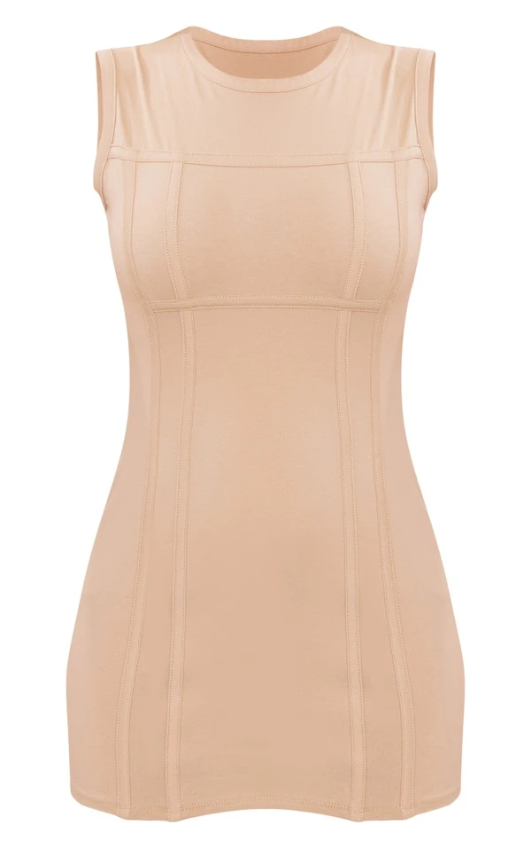 Robe moulante en coton gris pierre détail coutures style corset