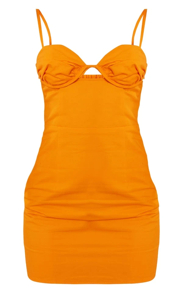 Robe moulante en maille sergée orange à découpe et bonnets froncés