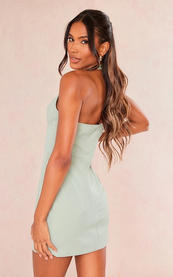 Divine, cette robe à la coupe moulante super flatteuse. Avec sa matière en maille tissée, la douceur de sa couleur vert sauge kaki et son design à bonnets plissés et à dos nu, on l’adore. Cette robe se porte avec une paire de mules et quelques accessoires, tout simplement !