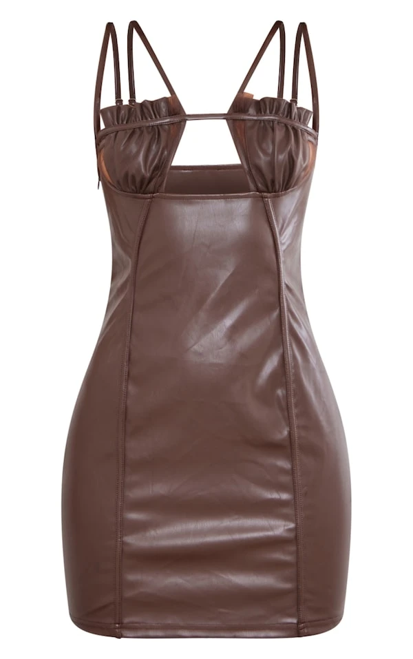 Robe moulante en similicuir chocolat à détail buste découpé