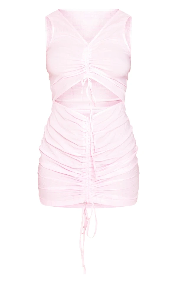 Robe moulante froncée texturée rose découpée sans manches