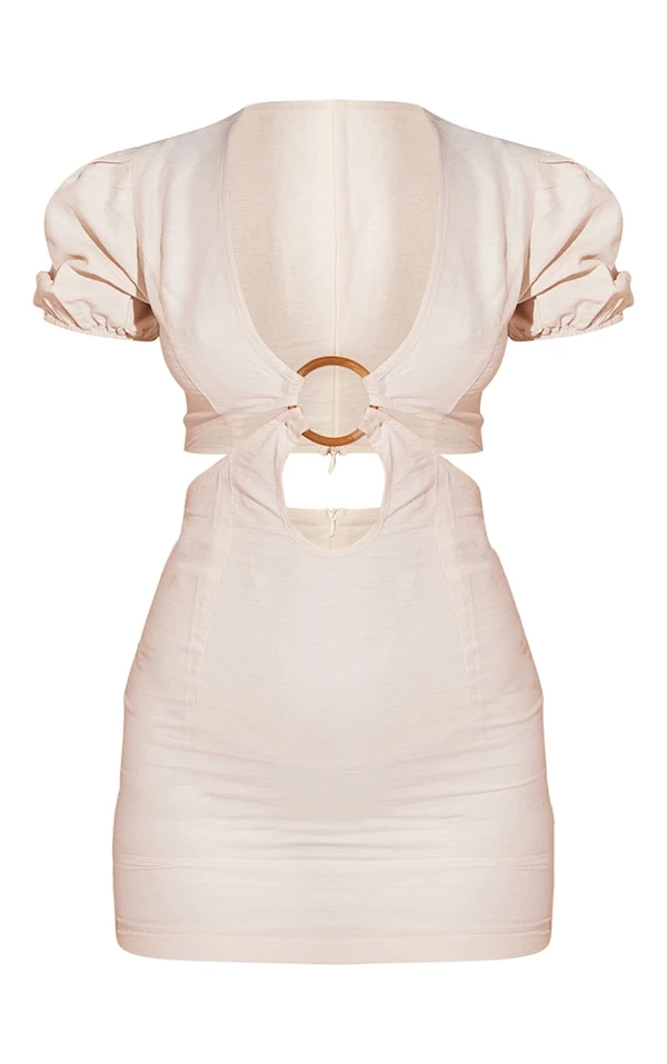 Robe moulante gris pierre effet lin à découpes et détail anneau