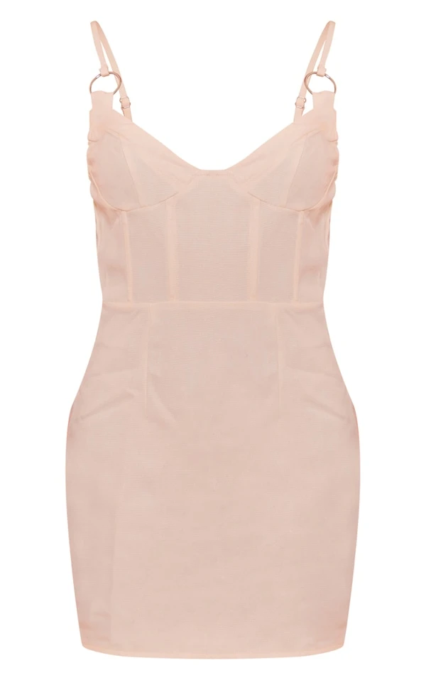 Robe moulante gris pierre effet lin à détail corset et anneaux