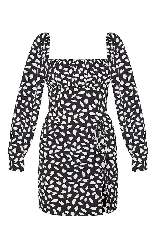 Robe moulante imprimée noire à fentes latérales et détail noeud