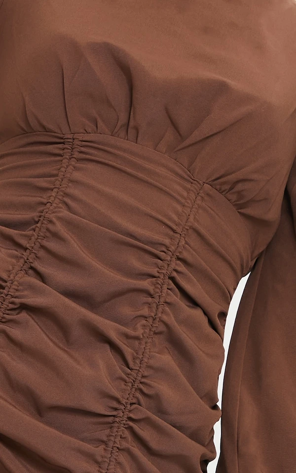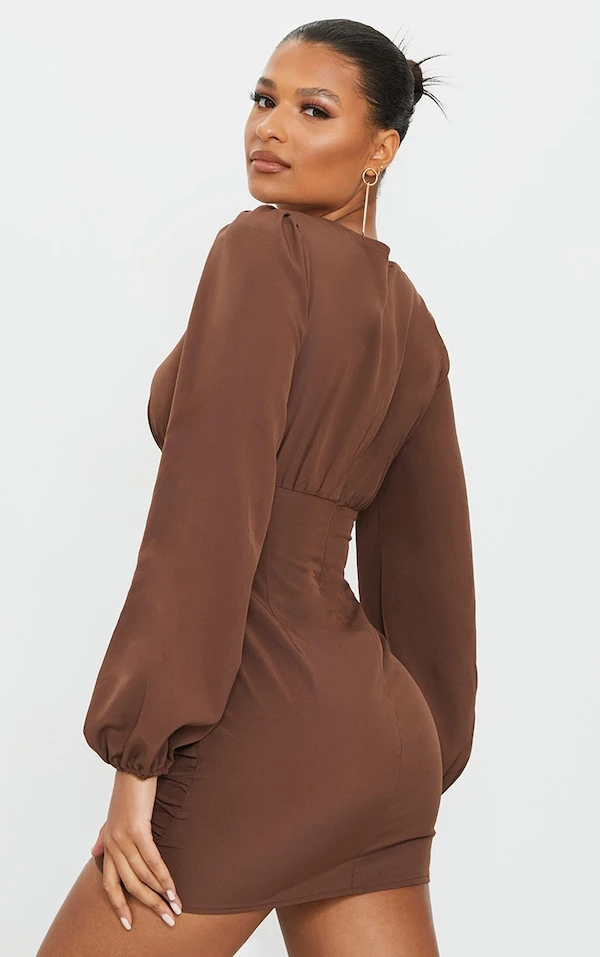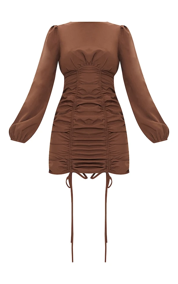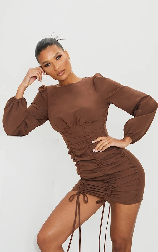 Robe moulante manches longues froncée chocolat