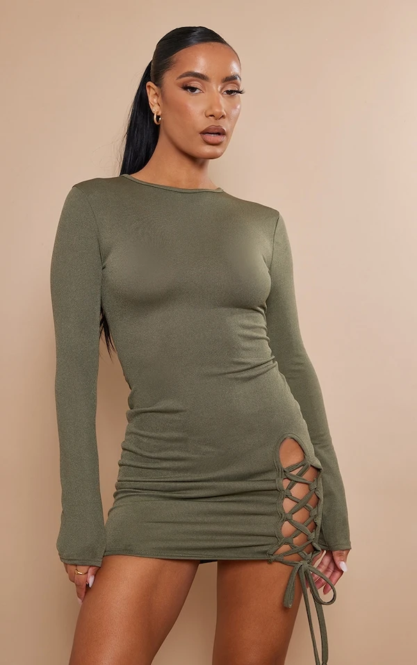 In love de cette robe à la coupe moulante flatteuse ! Avec sa couleur kaki tendance et son design à col haut très stylé, elle a tout d’une pièce culte. On aime la porter avec des talons transparents pour un look de soirée au top. Vous allez faire sensation !