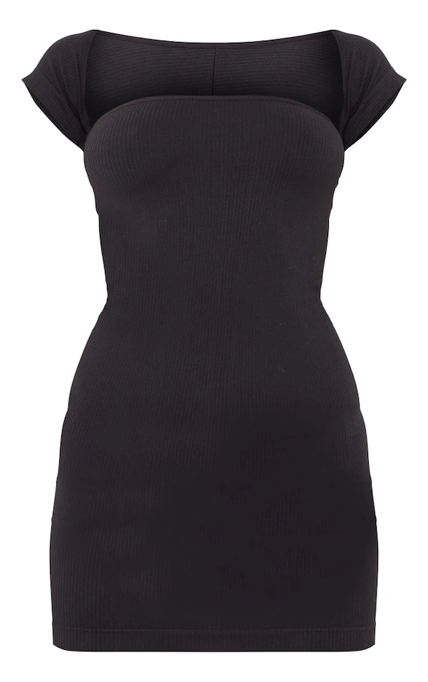 Robe moulante noire à contours structurés et mancherons