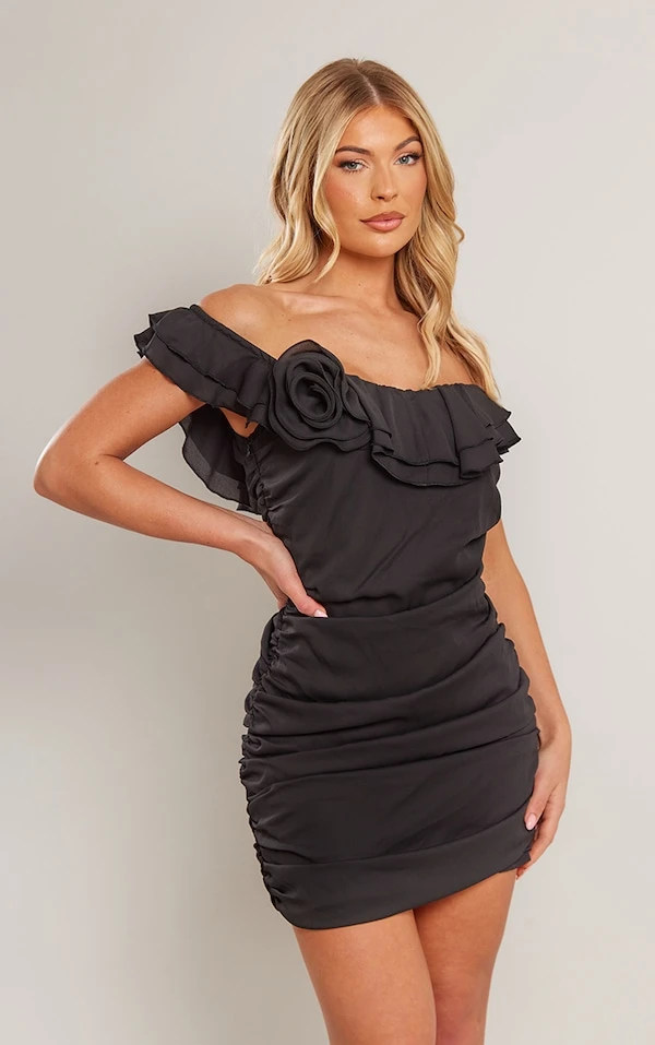 Canonissime, cette robe moulante ! On adore sa couleur noire qui va avec tout, son col bardot et le détail de sa fleur. Elle se porte avec une paire de mules à talons et quelques accessoires pour un look de soirée à tomber. Gorgeous !