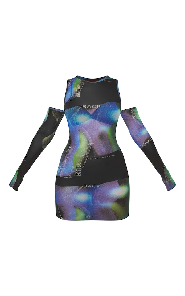 Robe moulante noire imprimé 3D à épaules dénudées