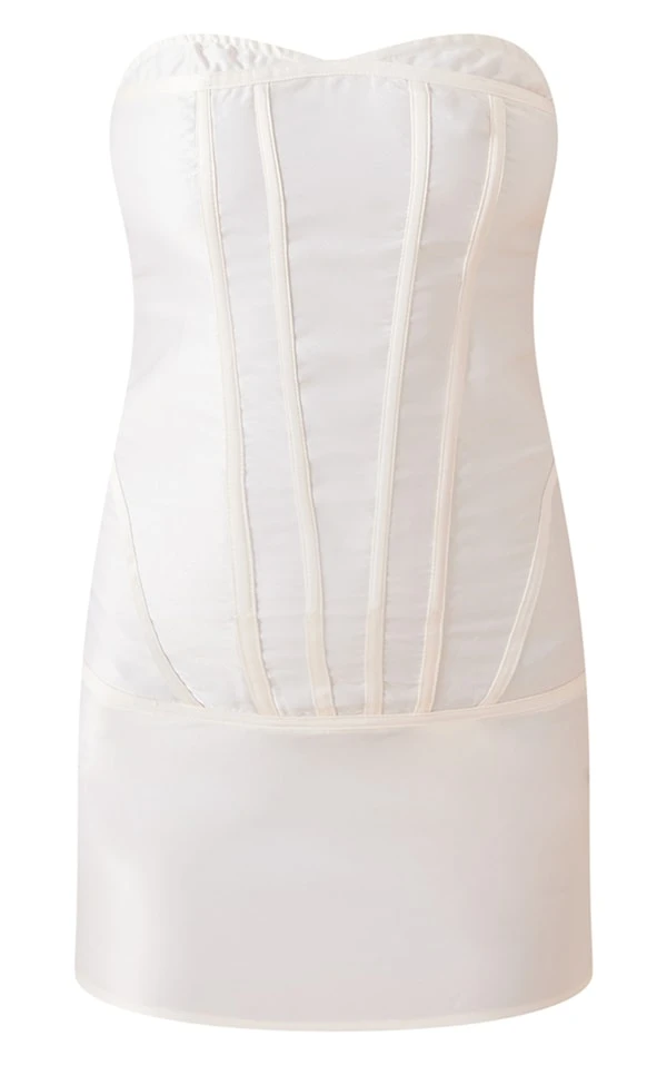 Robe moulante satinée crème à détail corset