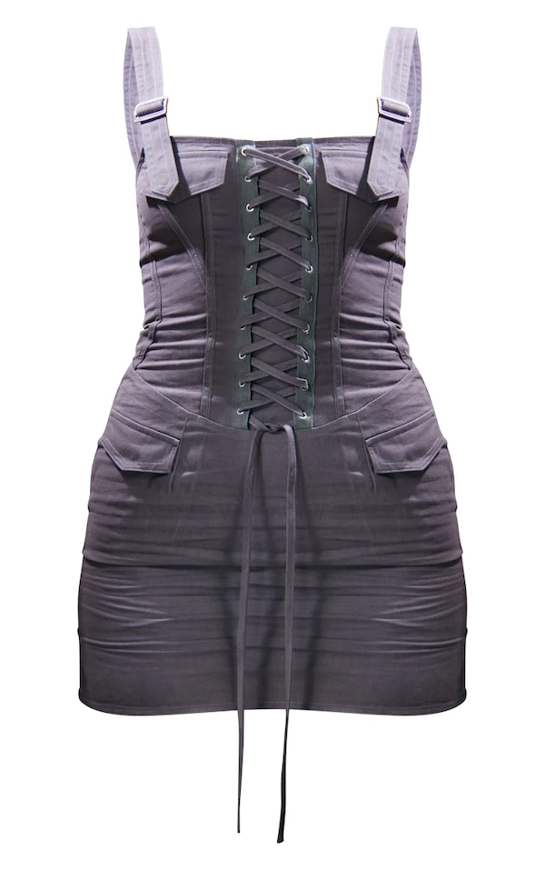 Robe moulante style cargo gris anthracite à lacets et détail boucles