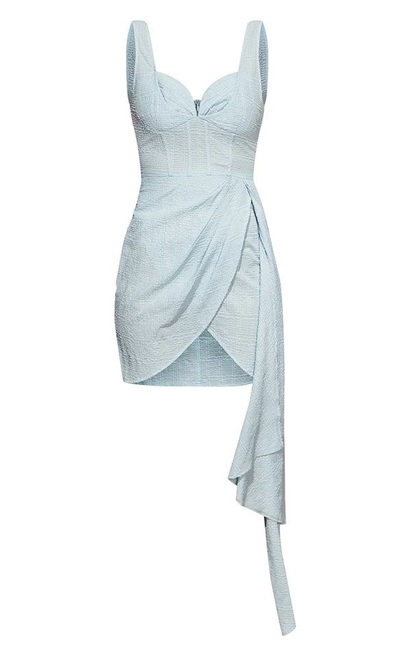 Robe moulante style corset bleu ciel texturée à effet drapé