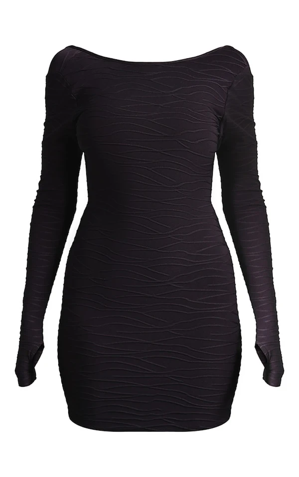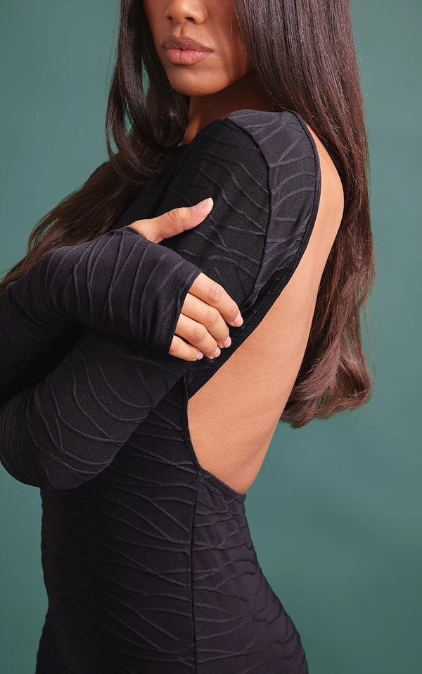 Robe Moulante Texturée Noire à Trous Pour Les Pouces Et Dos Nu