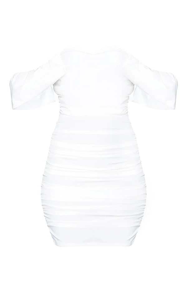 Simple et épurée la robe tissée! Dans son froncé canon et avec son coloris blanc et son col bardot coeur, c’est à associer à des talons et une paire de boucles d’oreilles XXL!