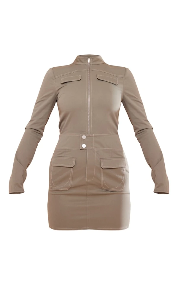 Big crush sur cette robe à la matière vert olive ! On adore sa coupe moulante super flatteuse, son coloris moderne et stylé et son design à coutures contrastantes qui font toute la différence sur le look. On enfile une paire de cuissardes, des créoles et un petit sac. Trop belle.