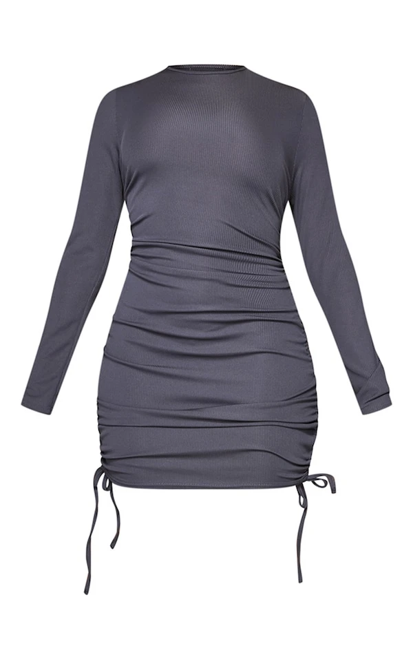 Robe moulante très côtelée gris anthracite à côté froncé