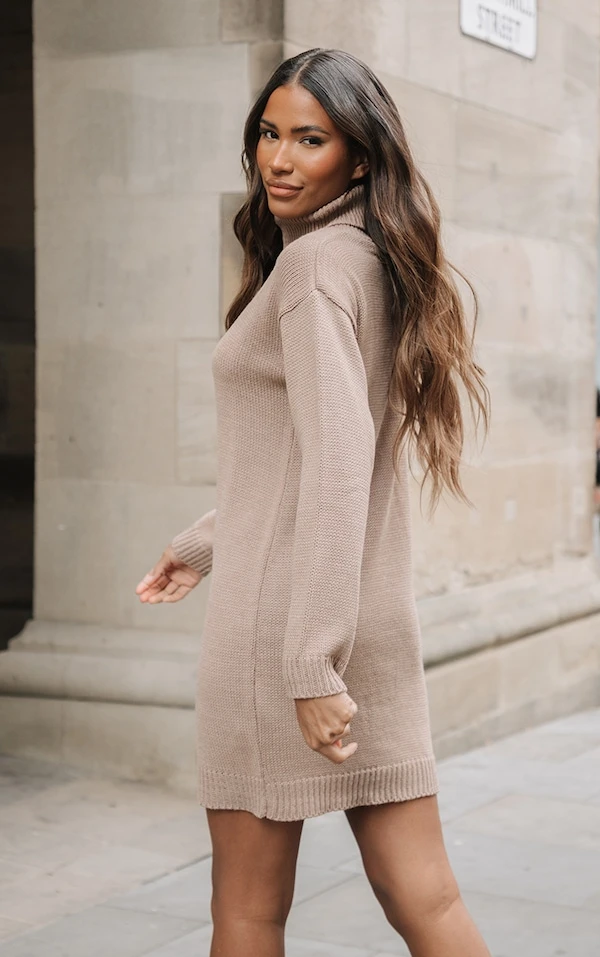 Petite émotion à la vue de cette robe pull ! Avec sa couleur café au lait, sa coupe basique et son col roulé, c’est une pièce indispensable. On adore la porter avec des bottines pour une journée qui part sur de bonnes bases !
