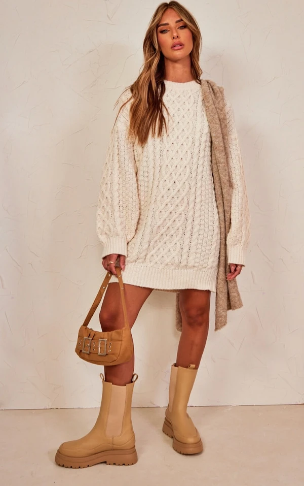 Ce pull répond à toutes nos envies pour l’hiver. Avec sa matière en maille torsadée épaisse pour le confort et sa teinte crème pour la douceur, sans oublier sa coupe décontractée, on ne va plus le quitter. On y ajoute une écharpe cosy et des bottines chunky pour compléter le tout.