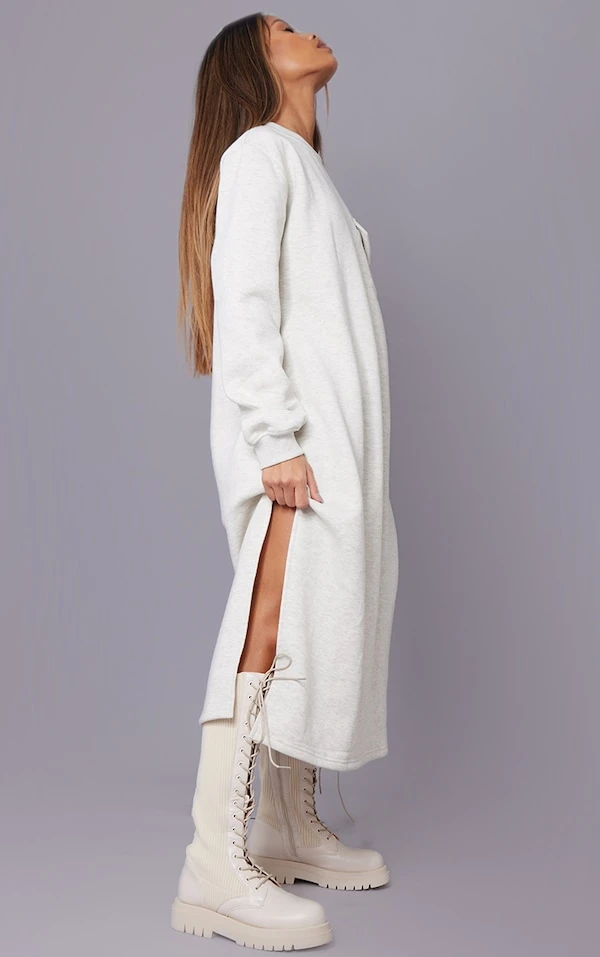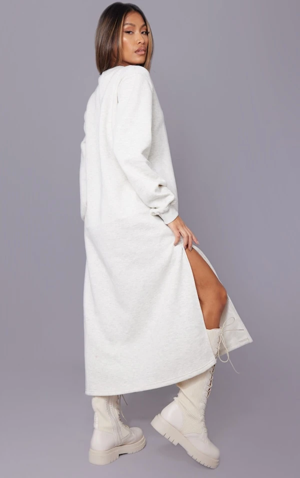 Robe pull longue avoine oversize à doublure polaire détail fendu