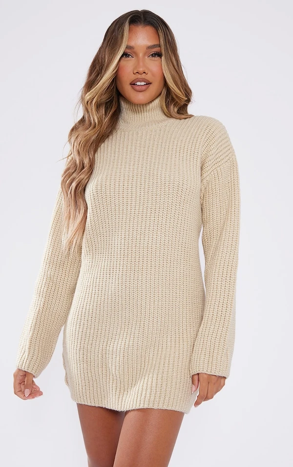 Robe pull oversize gris pierre en maille chunky à col roulé