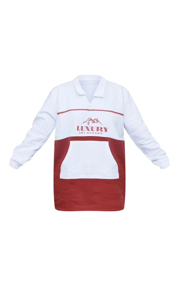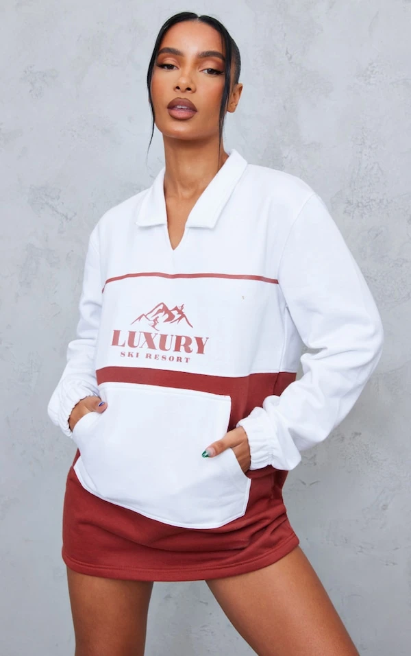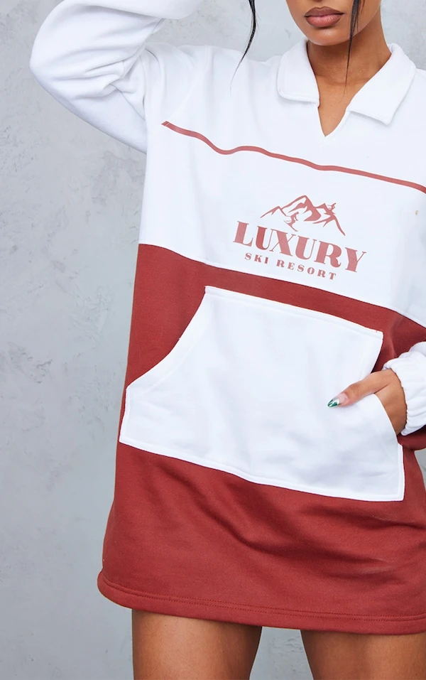 Robe pull rouille à doublure en polaire avec col et parties contrastantes