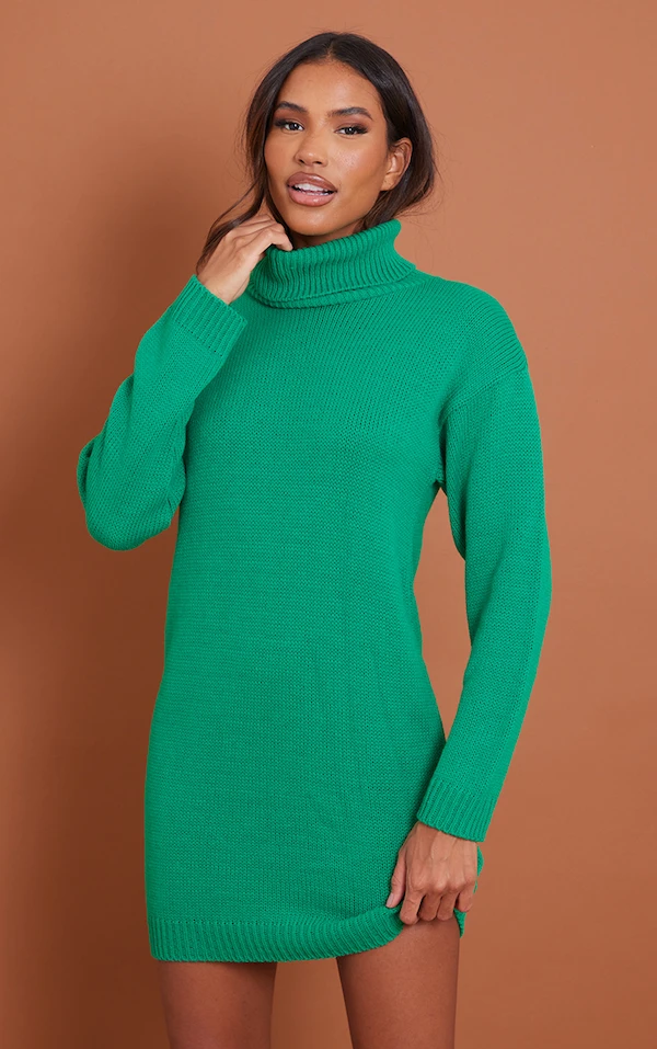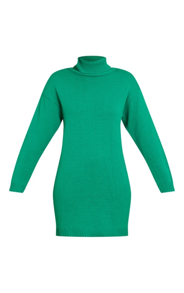 Robe pull verte basique en maille tricot à col roulé