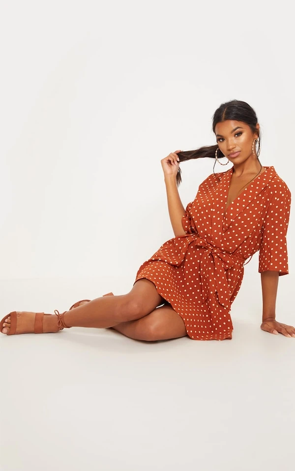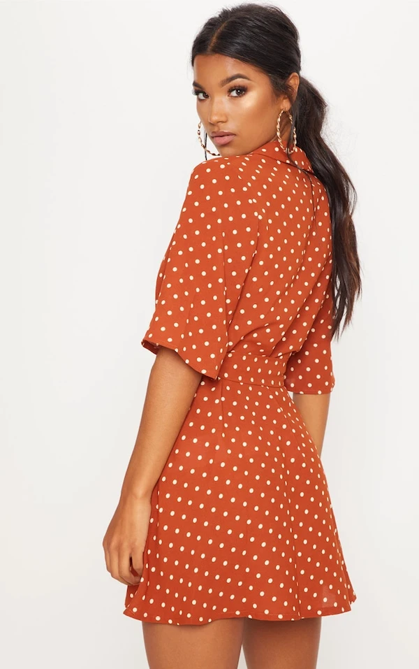 Robe rétro terracotta à pois