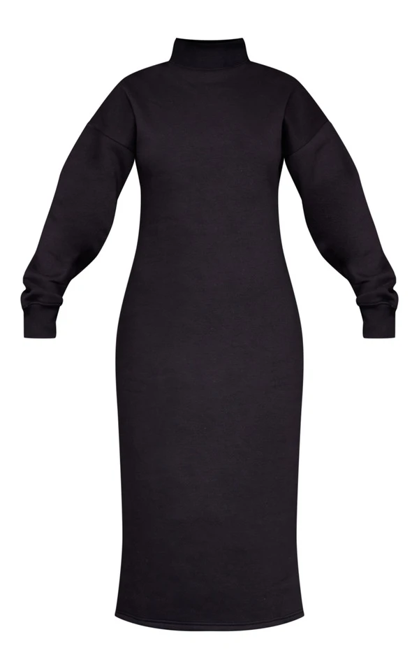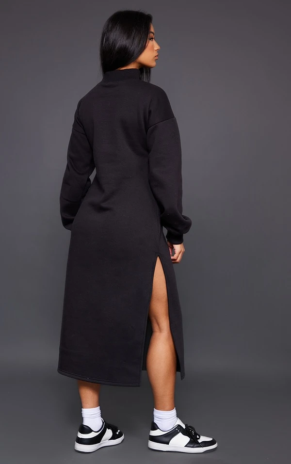 Robe sweat longue noire à col montant et doublure en polaire