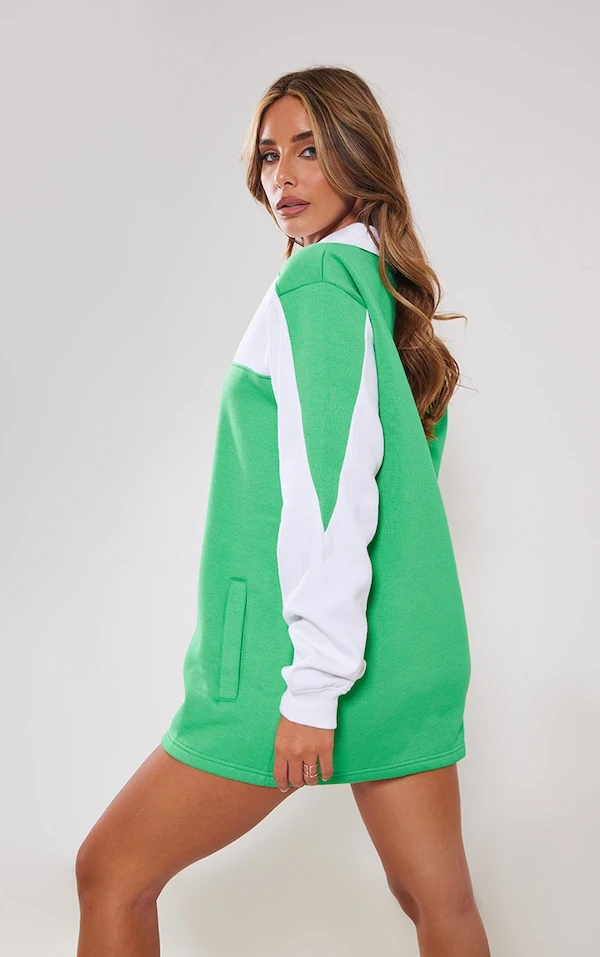In love de cette robe sweat ! Avec sa couleur verte, son col polo et ses rayures, elle a tout d’une pièce culte. Elle se porte avec une paire de bottines et une veste oversize pour rester stylée au quotidien. What a babe !