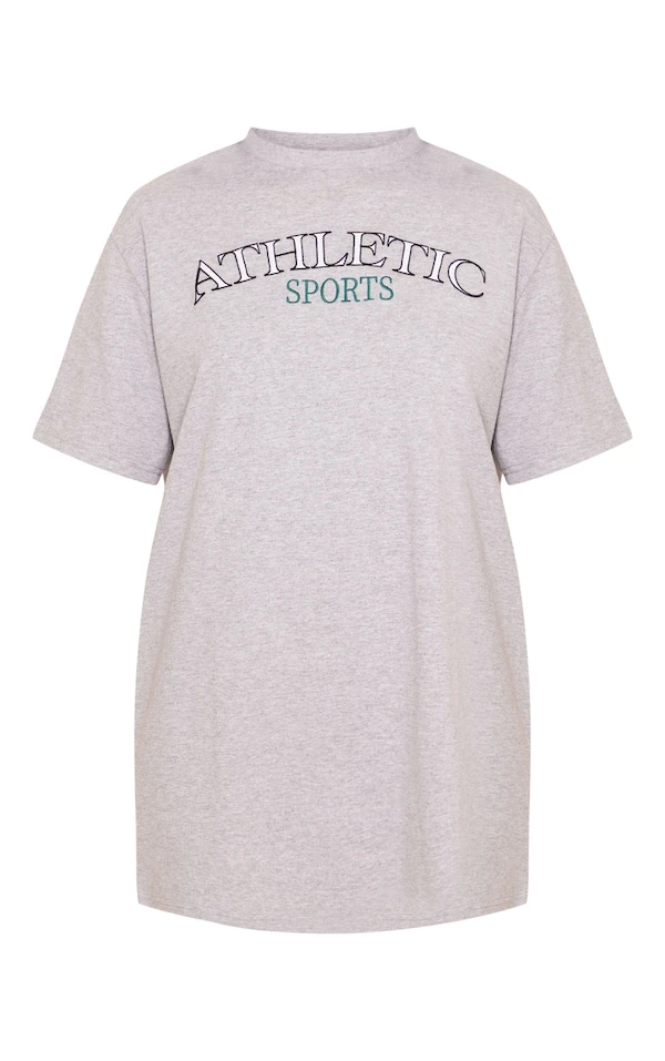 Robe t-shirt gris chiné à manches courtes et slogan badge Athletic Sportss