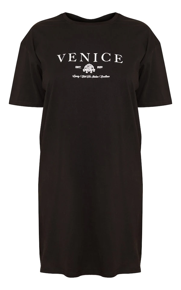 Robe T-shirt Oversize Noire à Slogan Venice