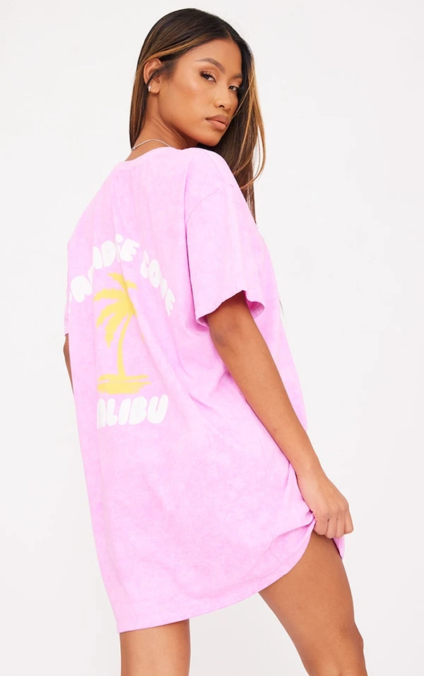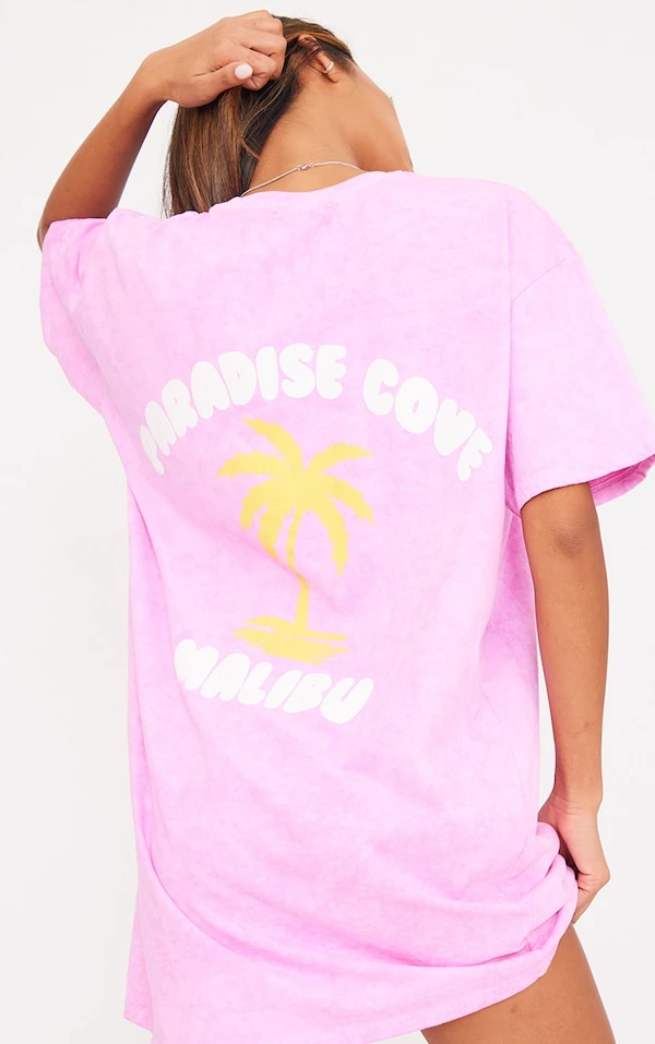 Robe t-shirt rose délavée à imprimé Paradise
