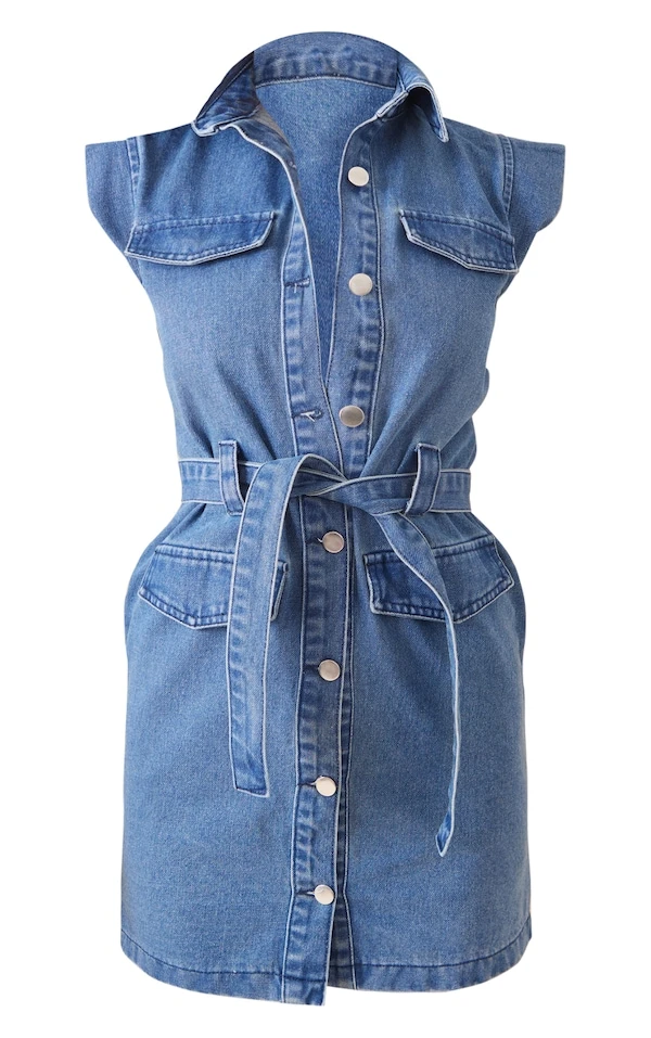 Clairement must-have, cette robe à la coupe très courte ! On est sous le charme de son style utilitaire canon et de sa matière en jean de couleur bleue moyennement délavée. Portée avec une paire de talons transparents, cette pièce attire tous les regards sur vous. So pretty !