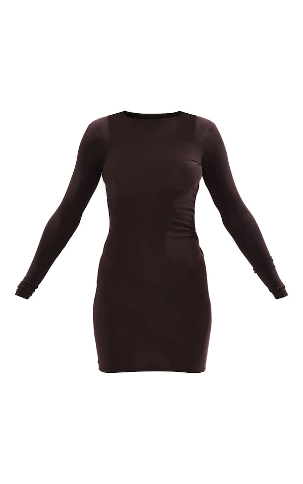Robe très moulante chocolat à découpe et lanière dans le dos