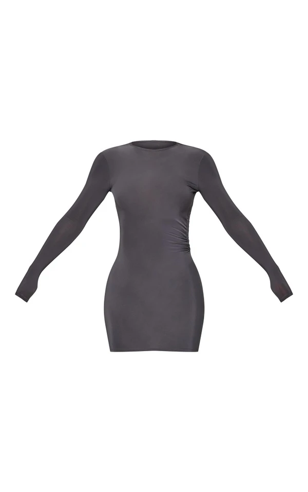 Robe très moulante gris anthracite à découpe et lanière dans le dos