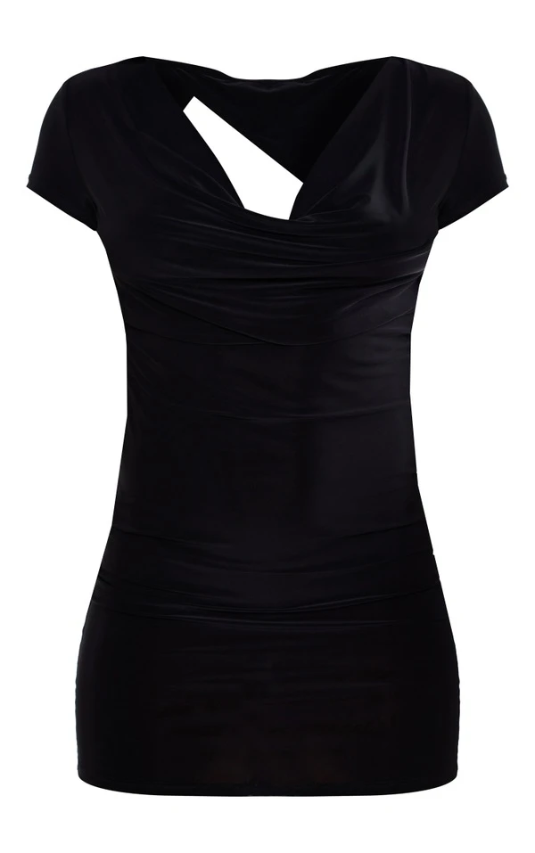 Robe très moulante noire détail mancherons à col bénitier et dos ouvert