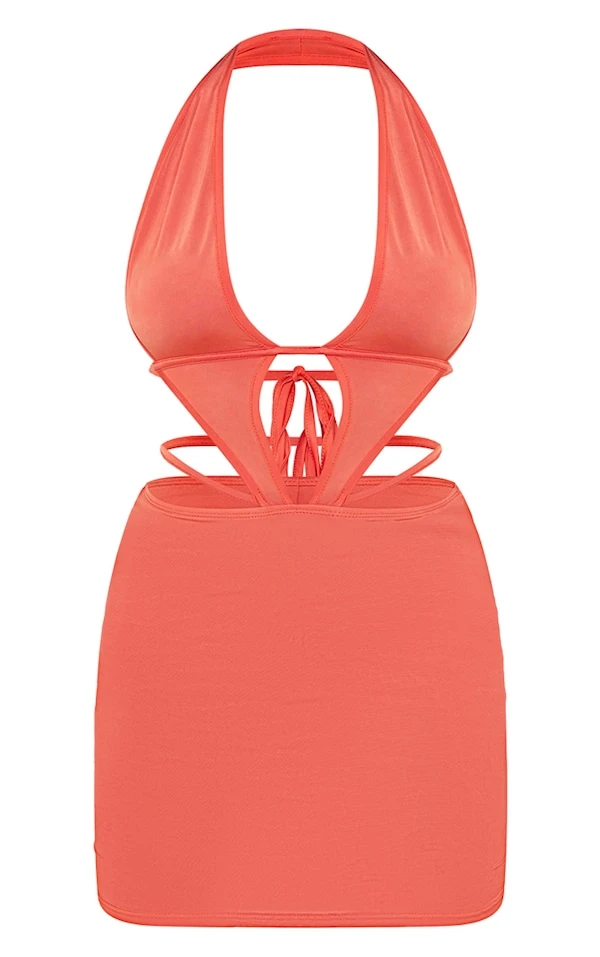 Robe très moulante orange à dos nu noué