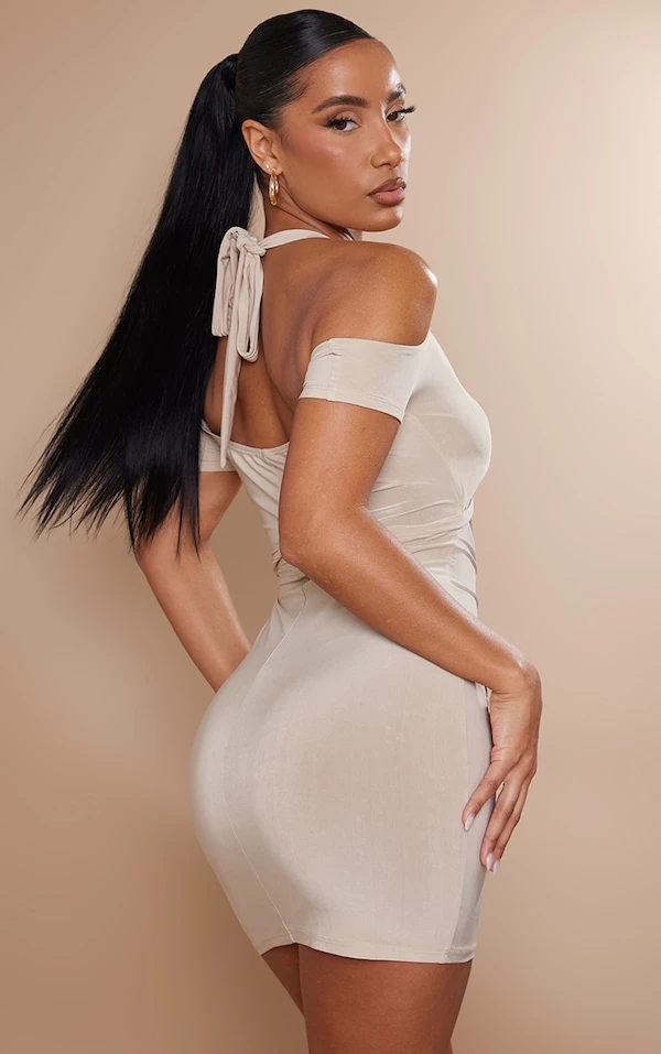 On est fans de la couleur gris pierre toute douce de cette robe ! Avec sa coupe moulante flatteuse et son design torsadé, on la shoppe sans plus attendre. Assurez un max de style en soirée en l’associant à des talons transparents et quelques bijoux. Vous êtes tellement belle !