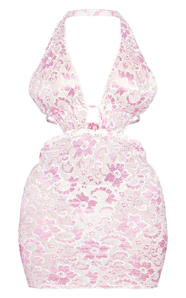 Shape Mini robe en dentelle rose vif à décolleté plongeant