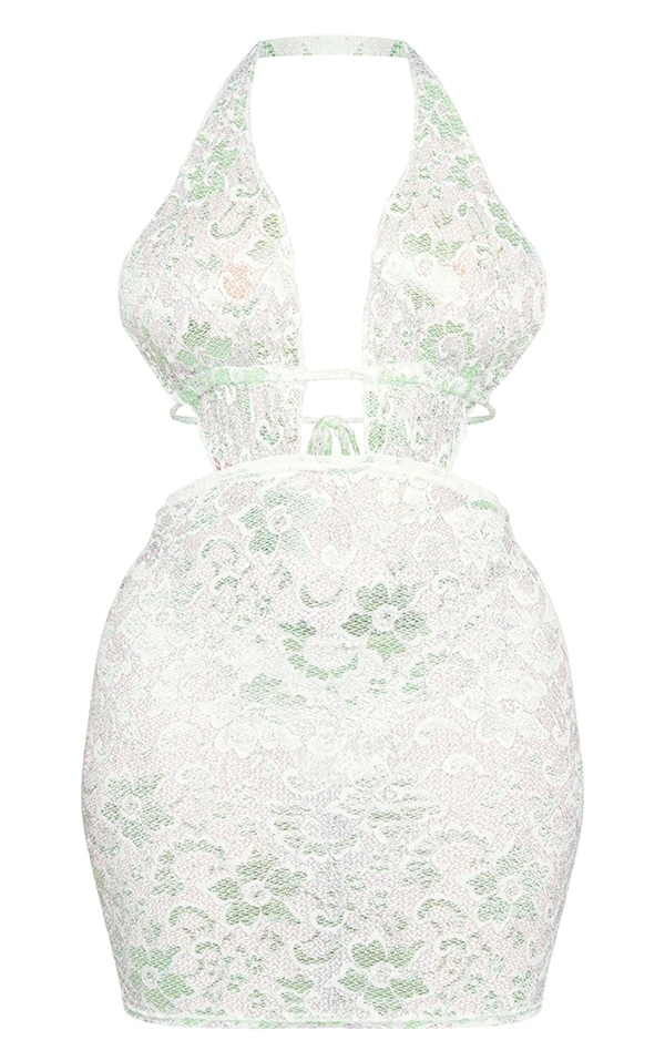 Shape Mini robe en dentelle vert citron à décolleté plongeant
