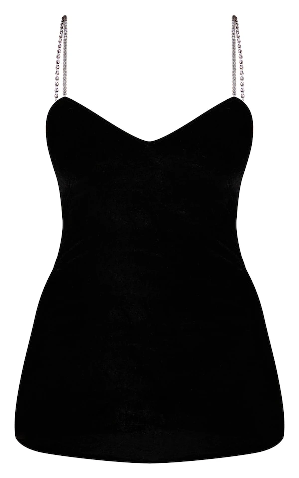 Shape Mini robe en velours noir à bretelles strassées et col coeur