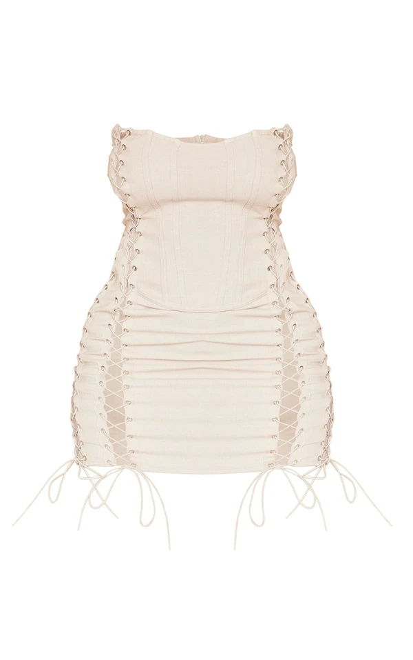 Shape Mini-robe style bustier en maille tissée gris pierre à lacets