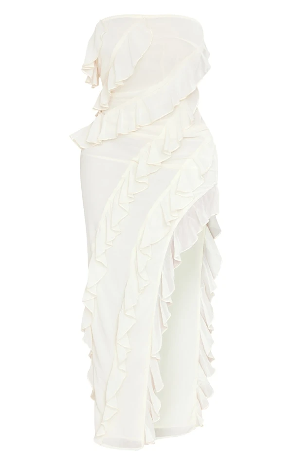 Shape Robe-bustier longue en maille tissée crème à volants et fente