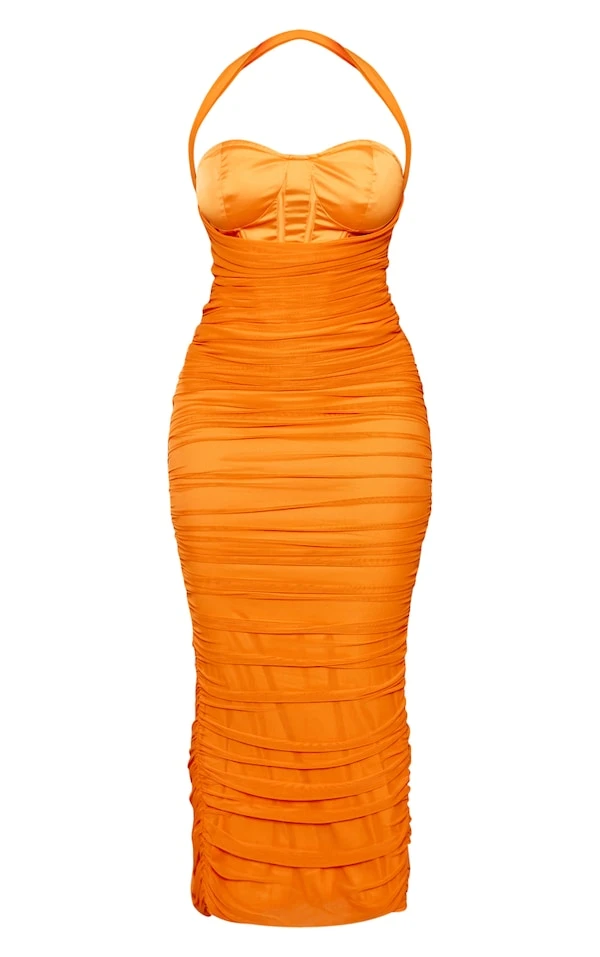 Shape Robe corset longue en mesh orange à fronces