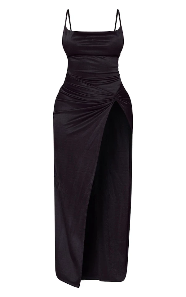 Shape Robe fendue longue enduite noire à col bénitier et torsade