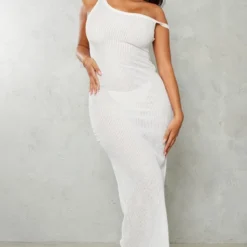 Shape Robe longue asymétrique blanche transparente côtelée douce