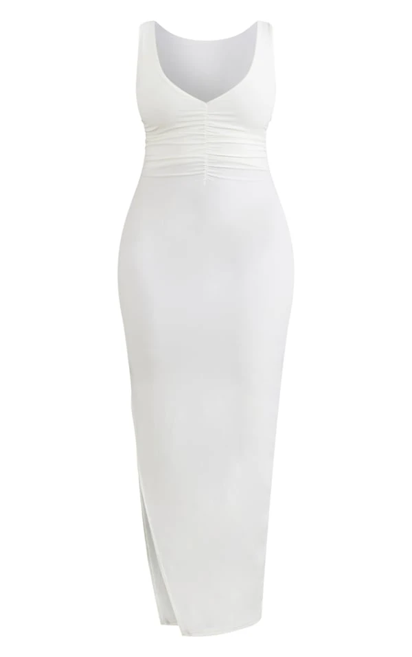 Cette robe longue est juste incroyable ! Ce qu’on aime le plus ? Sa coupe moulante qui vous donne un corps de rêve, son coloris crème tout doux et son design à buste froncé. N’hésitez-pas à l’associer à quelques bijoux argentés et une paire de talons hauts. Un look qui sera reposté sur les réseaux !