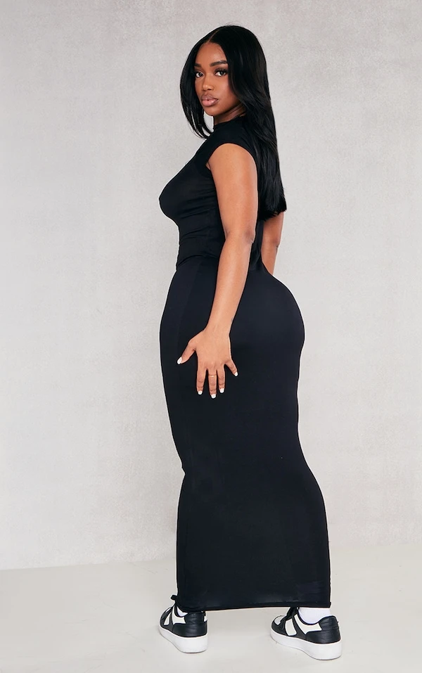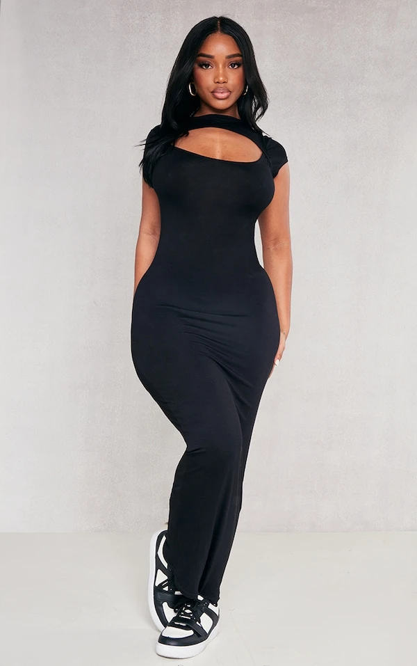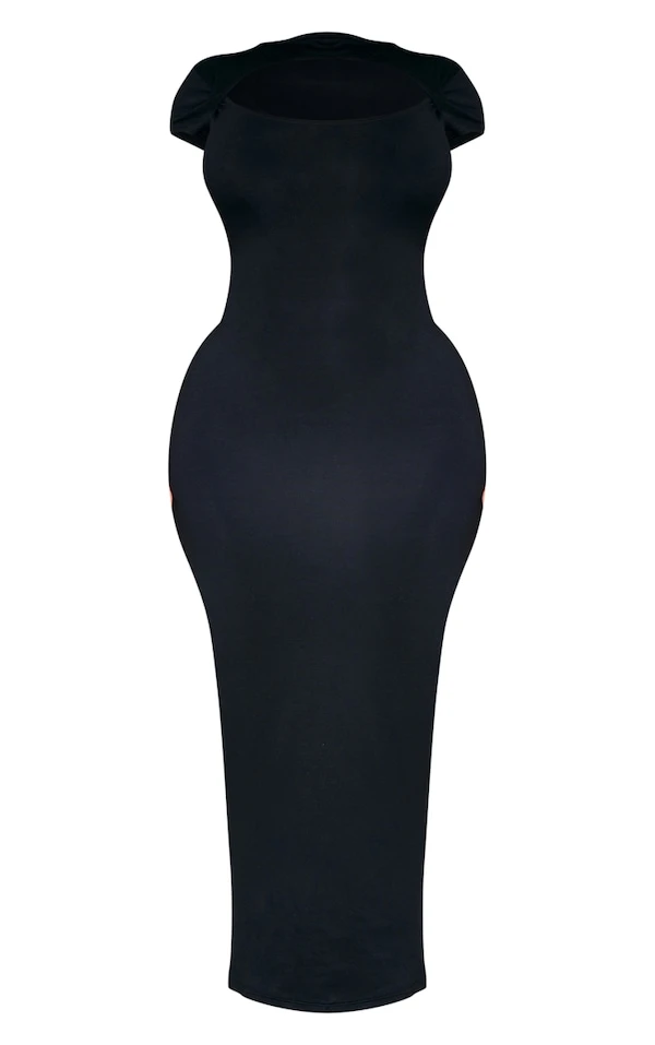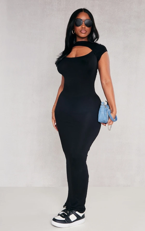 Shape Robe longue en coton noir découpé devant à manches courtes