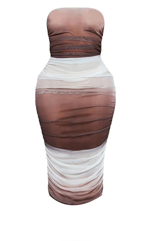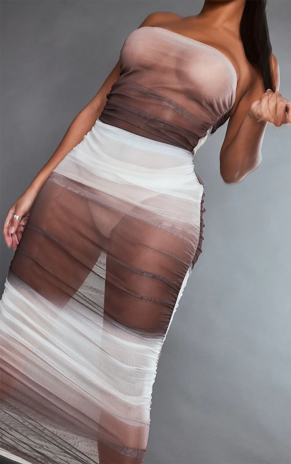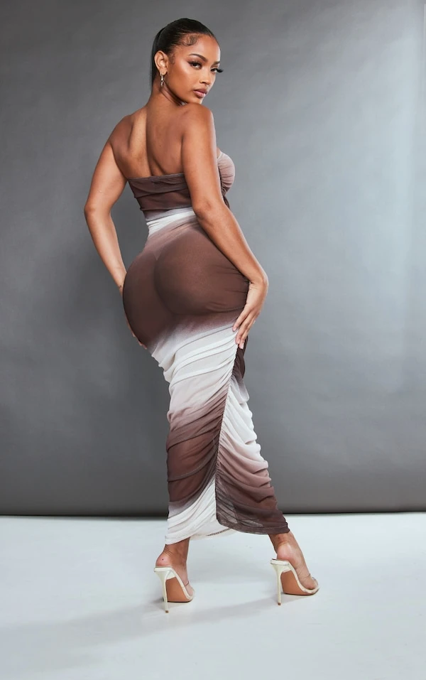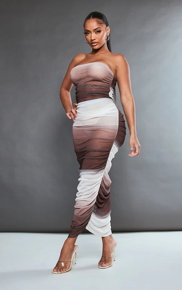 Shape Robe longue en mesh froncé marron imprimé dégradé